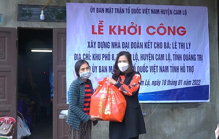 Sáng nay 18/1/2022, Ủy ban MTTQVN huyện Cam Lộ phối hợp với chính quyền địa phương tổ chức khởi công xây dựng nhà đại đoàn kết cho gia đình bà Lê Thị Lý, ở khu phố 8, thị trấn Cam Lộ, huyện Cam Lộ.