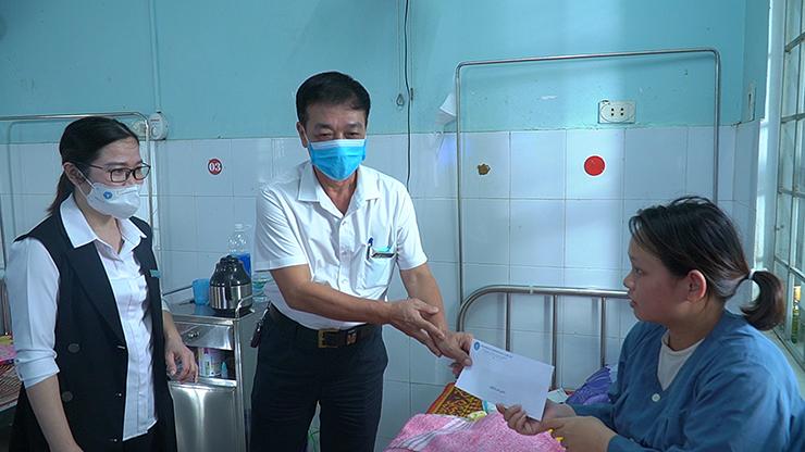 Đại diện lãnh đạo BHXH huyện gửi lời thăm hỏi, động viên các bệnh nhân sớm hồi phục sức khỏe để đón một cái tết ấm áp.