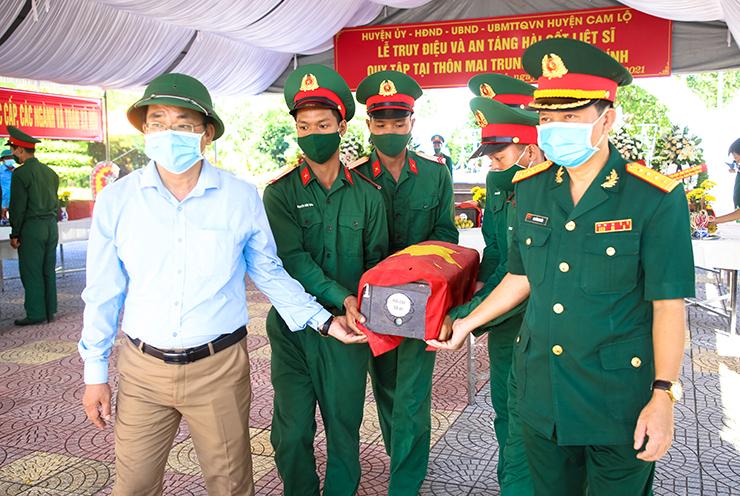 Sáng nay 1/10/2021, Huyện ủy, HĐND, UBND, UBMTTQVN huyện Cam Lộ đã trang trọng tổ chức lễ truy điệu và an táng hài cốt các anh hùng liệt sỹ được cất bốc, quy tập tại thôn Mai Trung, xã Cam Chính.