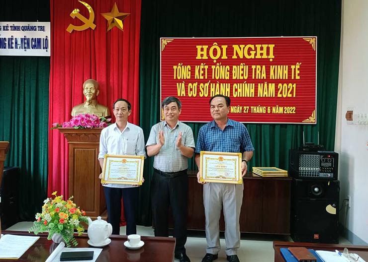 Dịp này, Cục Thống kê tỉnh và UBND huyện Cam Lộ đã tặng giấy khen cho 3 tập thể và 7 cá nhân có thành tích xuất sắc trong công tác điều tra kinh tế và điều tra cơ sở hành chính trên địa bàn huyện năm 2021.