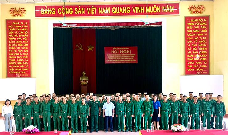 Đoàn công tác huyện Cam Lộ chụp ảnh lưu niệm với các chiến sỹ mới là con em của huyện đang thực hiện nghĩa vụ quân sự tại tỉnh Thanh Hóa-Ảnh: Hoàng Loan