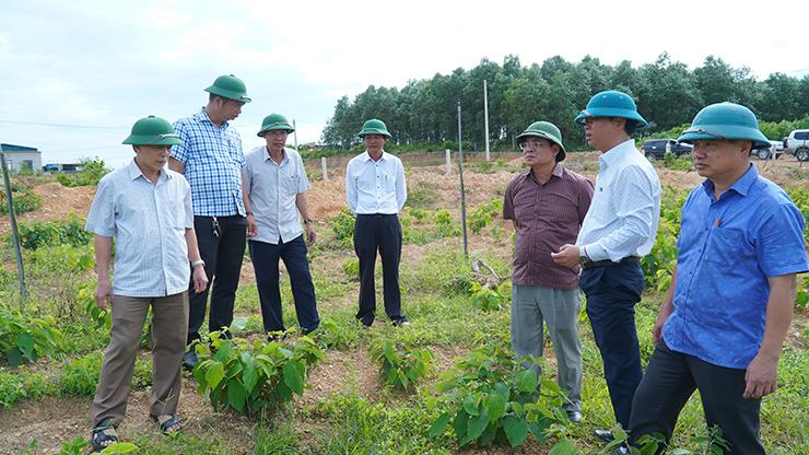 Các đồng chí lãnh đạo huyện kiểm tra mô hình trồng cây an xoa tại Cam Hiếu