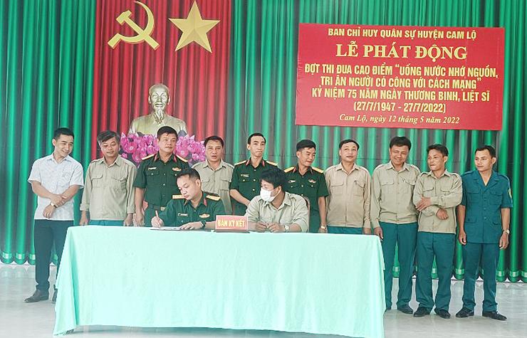 Ngày 12/5/2022, Ban Chỉ huy Quân sự huyện (CHQS) Cam Lộ đã tổ chức lễ phát động đợt thi đua cao điểm “Uống nước nhớ nguồn, tri ân người có công với cách mạng”, kỷ niệm 75 năm ngày thương binh liệt sĩ (27/7/1947-27/7/2022).
