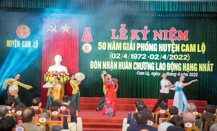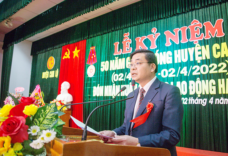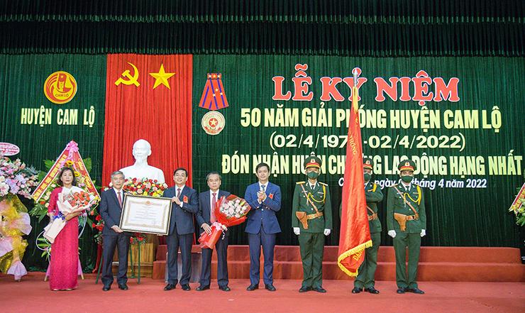 Nhân dịp này, thừa ủy quyền của Chủ tịch nước, Bí thư Tỉnh ủy Lê Quang Tùng trao Huân chương Lao động hạng Nhất cho Đảng bộ, chính quyền và Nhân dân huyện Cam Lộ. UVTƯ Đảng, Bộ trưởng Bộ Văn hóa, Thể thao và Du lịch Nguyễn Văn Hùng gửi lẵng hoa chúc mừng Đảng bộ, chính quyền và Nhân dân huyện Cam Lộ.