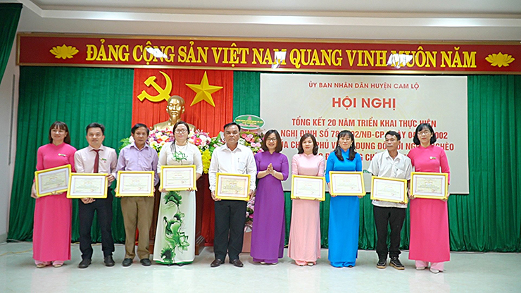 Trong 20 năm thực hiện tín dụng chính sách theo Nghị định số 78 của Chính phủ, huyện Cam Lộ đã tập trung nguồn lực tín dụng qua NHCSXH cho vay được 41.424 lượt hộ nghèo và các đối tượng chính sách khác với doanh số cho vay đạt 870.957 triệu đồng, doanh số thu nợ đạt 559.242 triệu đồng. Tổng dư nợ đến 30/6/2022 đạt 322.181 triệu đồng với 6.129 hộ nghèo và các đối tượng chính sách khác đang vay vốn.