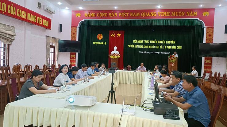 Ngày 30/6/2022, UBND huyện Cam Lộ đã tổ chức hội nghị trực tuyến tuyên truyền, phổ biến Luật Phòng, chống ma túy và Luật Xử lý vi phạm hành chính cho lãnh đạo các cơ quan, đơn vị, UBND các xã, thị trấn trên địa bàn huyện.