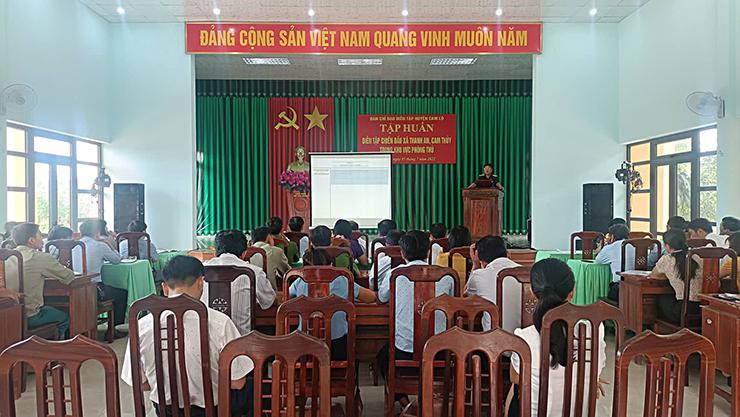 Ban Tổ chức diễn tập phòng thủ huyện Cam Lộ vừa tổ chức hội nghị tập huấn diễn tập chiến đấu xã Thanh An, Cam Thủy trong khu vực phòng thủ năm 2022 cho Tổ đạo diễn diễn tập, lãnh đạo, công chức, viên chức các ban, ngành, đoàn thể các xã tham gia diễn tập.