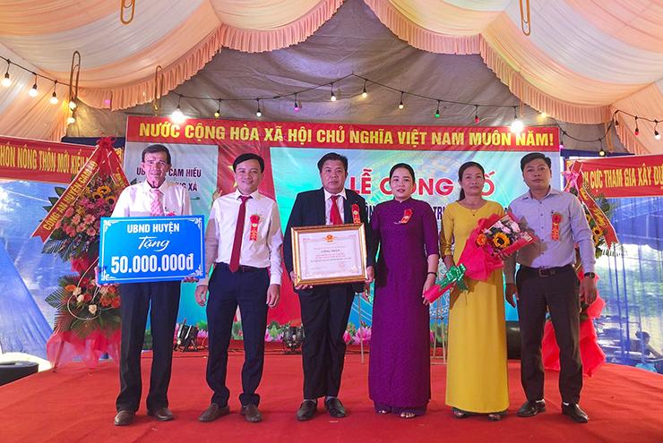 Tại lễ công bố, UBND huyện Cam Lộ đã tặng cho thôn Trương Xá công trình phúc lợi trị giá 50 triệu đồng; UBND xã Cam Hiếu tặng giấy khen cho 2 tập thể, 7 cá nhân và trao tặng 3 bảng ghi nhận tấm lòng vàng cho 3 cá nhân có nhiều đóng góp, ủng hộ thôn Trương Xá xây dựng thành công thôn nông thôn mới kiểu mẫu mức độ.