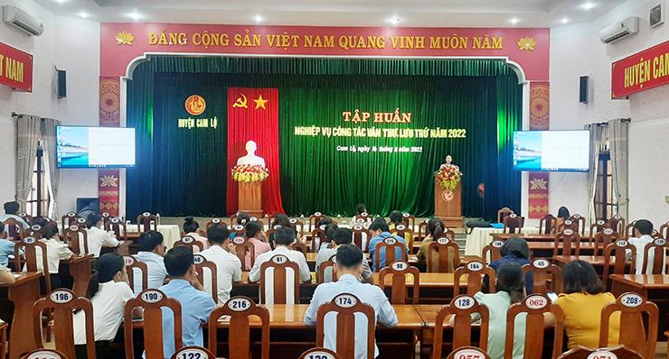 Trong hai ngày 16-17/8/2022, UBND huyện Cam Lộ phối hợp với Sở Nội vụ tổ chức tập huấn công tác nghiệp vụ văn thư, lưu trữ năm 2022 cho lãnh đạo, công chức, viên chức phụ trách lĩnh vực văn phòng thống kê, kiêm nhiệm công tác văn thư lưu trữ của các cơ quan, đơn vị; UBND các xã, thị trấn trên địa bàn huyện.