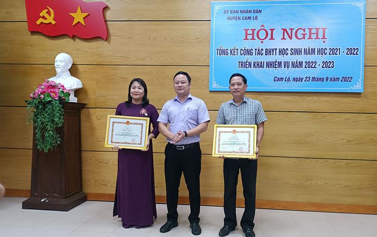 Dịp này, Tổng Giám đốc BHXH Việt Nam đã tặng bằng khen cho 2 tập thể; BHXH tỉnh Quảng Trị tặng giấy khen cho 2 tập thể, 1 cá nhân; UBND huyện Cam Lộ tặng giấy khen cho 3 tập thể và 4 cá nhân có nhiều thành tích trong công tác tuyên truyền, vận động, công tác thu, nộp BHYT học sinh trong năm học vừa qua.