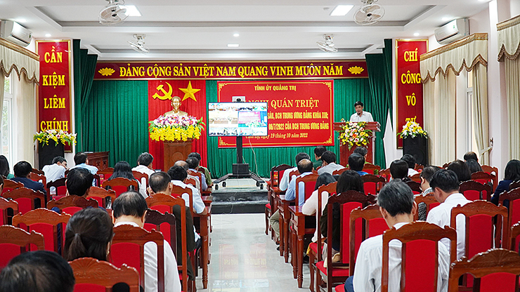 Hôm nay 19/10/2022, Ban Thường vụ Tỉnh ủy tổ chức hội nghị quán triệt nội dung Hội nghị Trung ương 6 khóa XIII; Quy định 69 của Ban Chấp hành (BCH) Trung ương Đảng về kỷ luật tổ chức đảng, đảng viên vi phạm. Hội nghị được tổ chức theo hình thức trực tiếp tại điểm cầu Tỉnh ủy và trực tuyến kết nối các điểm cầu huyện, thị, thành ủy. Tại điểm cầu Huyện ủy Cam Lộ, các đồng chí trong Ban Thường vụ Huyện ủy, các đồng chí HUV và lãnh đạo các cơ quan, ban ngành cấp huyện, Bí thư các TCCSĐ tham dự hội nghị.