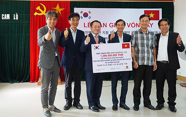 Bàn giao vốn vay Dự án chăn nuôi bò cho gia đình người khuyết tật do KRX tài trợ