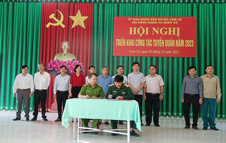 Theo kế hoạch năm 2023, huyện Cam Lộ dự kiến được giao tuyển 102 công dân, trong đó 74 công dân thực hiện nghĩa vụ quân sự và 28 công dân thực hiện nghĩa vụ công an dân nhân dân. Để thực hiện nhiệm vụ tuyển chọn gọi công dân nhập ngũ năm 2023 đạt kết quả tốt nhất, huyện đã kiện toàn Hội đồng nghĩa vụ quân sự, phân công nhiệm vụ cho các thành viên cũng như các cơ quan, đơn vị; ban hành các văn bản chỉ đạo, làm cơ sở cho các địa phương tổ chức quán triệt, triển khai thực hiện chặt chẽ, đảm bảo đúng nguyên tắc, đúng quy trình, quy định của pháp luật trong quá trình tuyển chọn, gọi công dân nhập ngũ.
