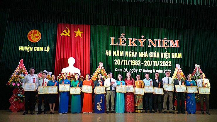 Dịp này, UBND huyện Cam Lộ đã tặng giấy khen cho 16 tập thể và 30 cá nhân có thành tích xuất sắc trong phong trào thi đua chào mừng kỳ niệm 40 năm ngày Nhà giáo Việt Nam.