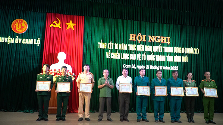 10 năm qua, các cấp ủy Đảng, chính quyền và ban ngành trên địa bàn huyện Cam Lộ đã tích cực quán triệt, lãnh đạo, chỉ đạo triển khai nghiêm túc Nghị quyết Trung ương 8 (khóa XI) gắn với thực hiện các nghị quyết, chỉ thị của Đảng, chính sách, pháp luật của Nhà nước về nhiệm vụ phát triển kinh tế - xã hội, giữ vững ổn định chính trị, trật tự an toàn xã hội ở địa phương, nhờ đó nhận thức của cán bộ, đảng viên, Nhân dân và lực lượng vũ trang (LLVT) trong toàn huyện về hai nhiệm vụ chiến lược xây dựng và bảo vệ Tổ quốc đã được nâng cao. Việc vận hành cơ chế lãnh đạo của Đảng đối với nhiệm vụ bảo vệ Tổ quốc trong tình hình mới được duy trì có nền nếp, đạt hiệu quả. Chất lượng tổng hợp và sức chiến đấu của LLVT ngày càng được nâng cao. Từ năm 2013 đến nay, toàn huyện có 3139 cán bộ đối tượng 2,3,4 và hơn 24.455 lượt học sinh được bồi dưỡng, giáo dục quốc phòng-an ninh theo đúng quy định. Tổ chức 2 cuộc diễn tập khu vực phòng thủ huyện và 17 cuộc diễn tập chiến đấu phòng thủ xã…