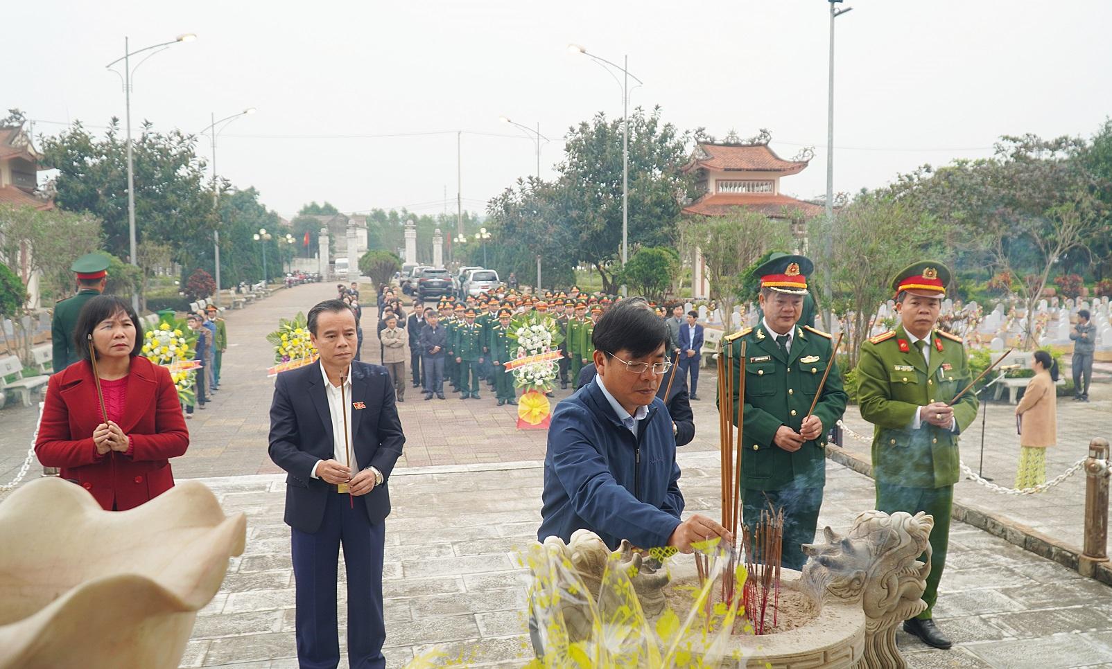 Các đồng chí lãnh đạo huyện dâng hương tưởng niệm các anh hùng liệt sỹ tại nghĩa trang liệt sỹ huyện
