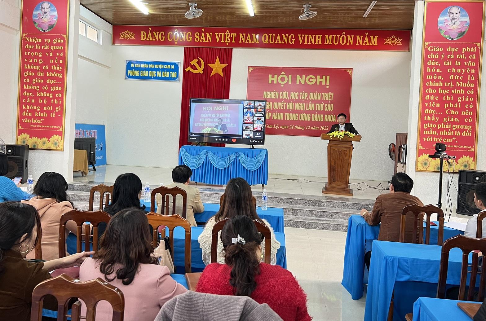 Phòng Giáo dục và Đào tạo huyện vừa tổ chức hội nghị nghiên cứu, học tập, quán triệt Nghị quyết hội nghị lần thứ 6, Ban Chấp hành Trung ương Đảng, khóa XIII cho các cán bộ, giáo viên, nhân viên trong toàn ngành.