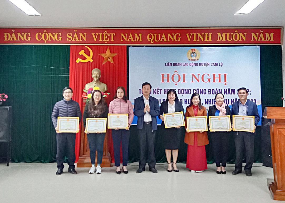 Tại hội nghị, có 3 tập thể và 5 cá nhân được Liên đoàn Lao động tỉnh Quảng Trị tặng Bằng khen; 3 tập thể và 4 cá nhân được UBND huyện tặng giấy khen vì đã có nhiều thành tích trong phong trào thi đua lao động giỏi và xây dựng tổ chức công đoàn vững mạnh năm 2022.