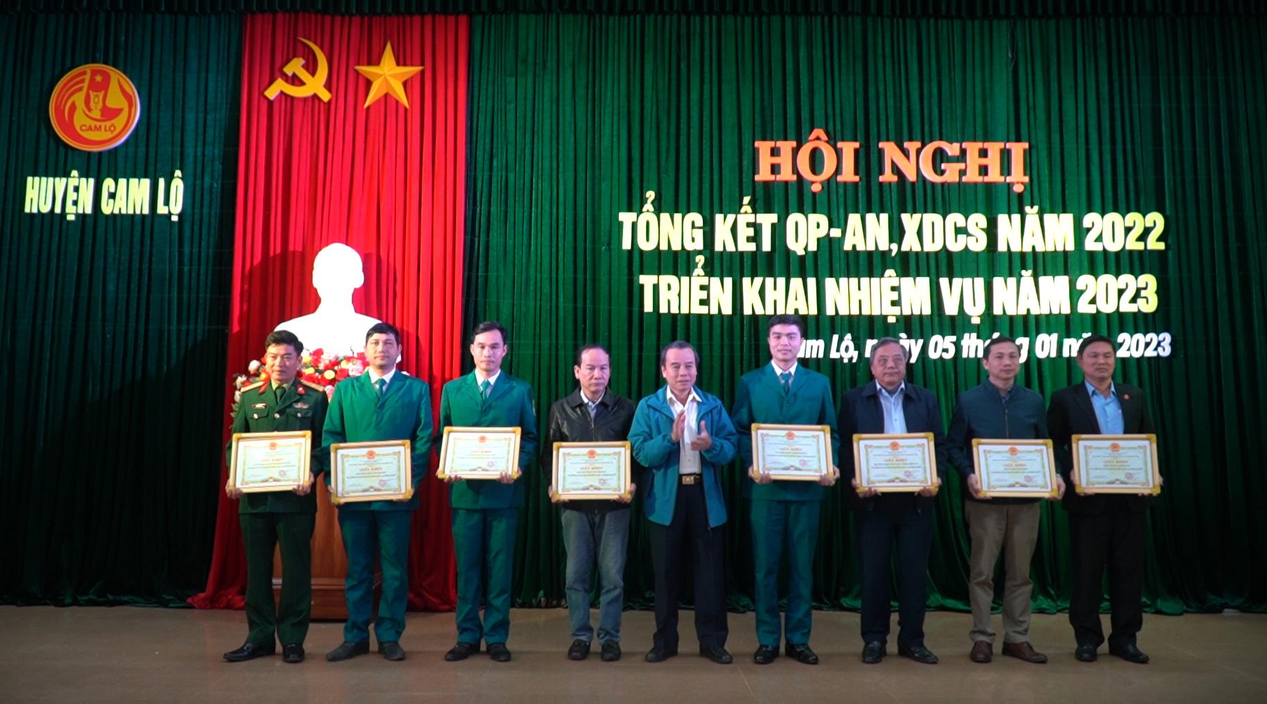 Dịp này, UBND huyện Cam Lộ đã khen thưởng cho 15 tập thể và 31 cá nhân có nhiều thành tích trong công tác QP-AN năm 2022.