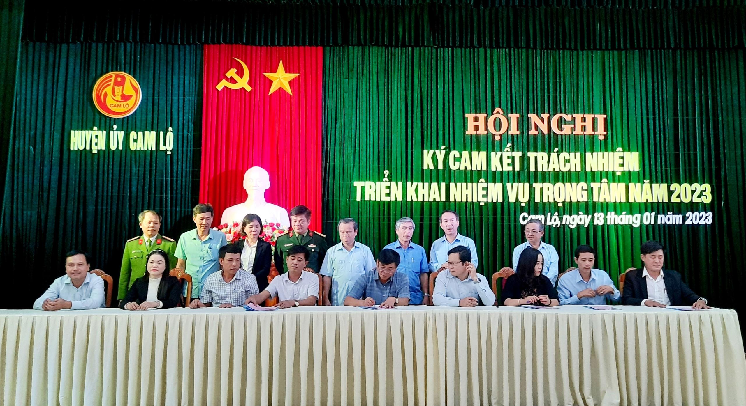 Huyện ủy Cam Lộ đã tổ chức triển khai nhiệm vụ và ký cam kết trách nhiệm triển khai nhiệm vụ trọng tâm năm 2023.