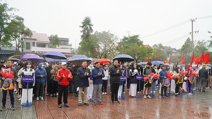 Lãnh đạo Sở Văn hóa-Thể thao và Du lịch tỉnh cùng lãnh đạo huyện Cam Lộ tặng hoa chúc mừng các đoàn vận động viên