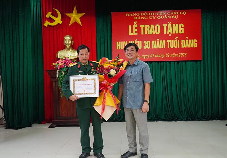 Chiều nay 2/2/2023, Đảng ủy Quân sự huyện Cam Lộ đã tổ chức lễ trao tặng Huy hiệu 30 năm tuổi đảng cho Thượng tá Nguyễn Hữu Quy, Chính trị viên Ban CHQS huyện, Phó Bí thư Đảng ủy Quân sự huyện. Dự lễ có đồng chí Đỗ Văn Bình, TUV, Bí thư Huyện ủy, Bí thư Đảng ủy Quân sự huyện.