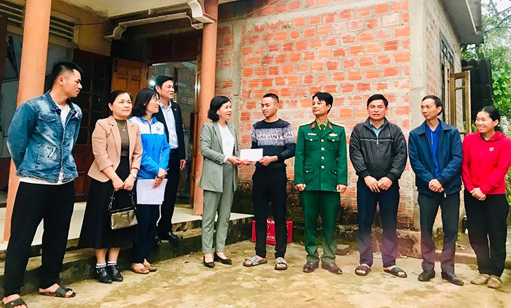 Lãnh đạo Ủy ban MTTQVN huyện tặng quà động viên các gia đình thanh niên có hoàn cảnh khó khăn trước ngày lên đường nhập ngũ