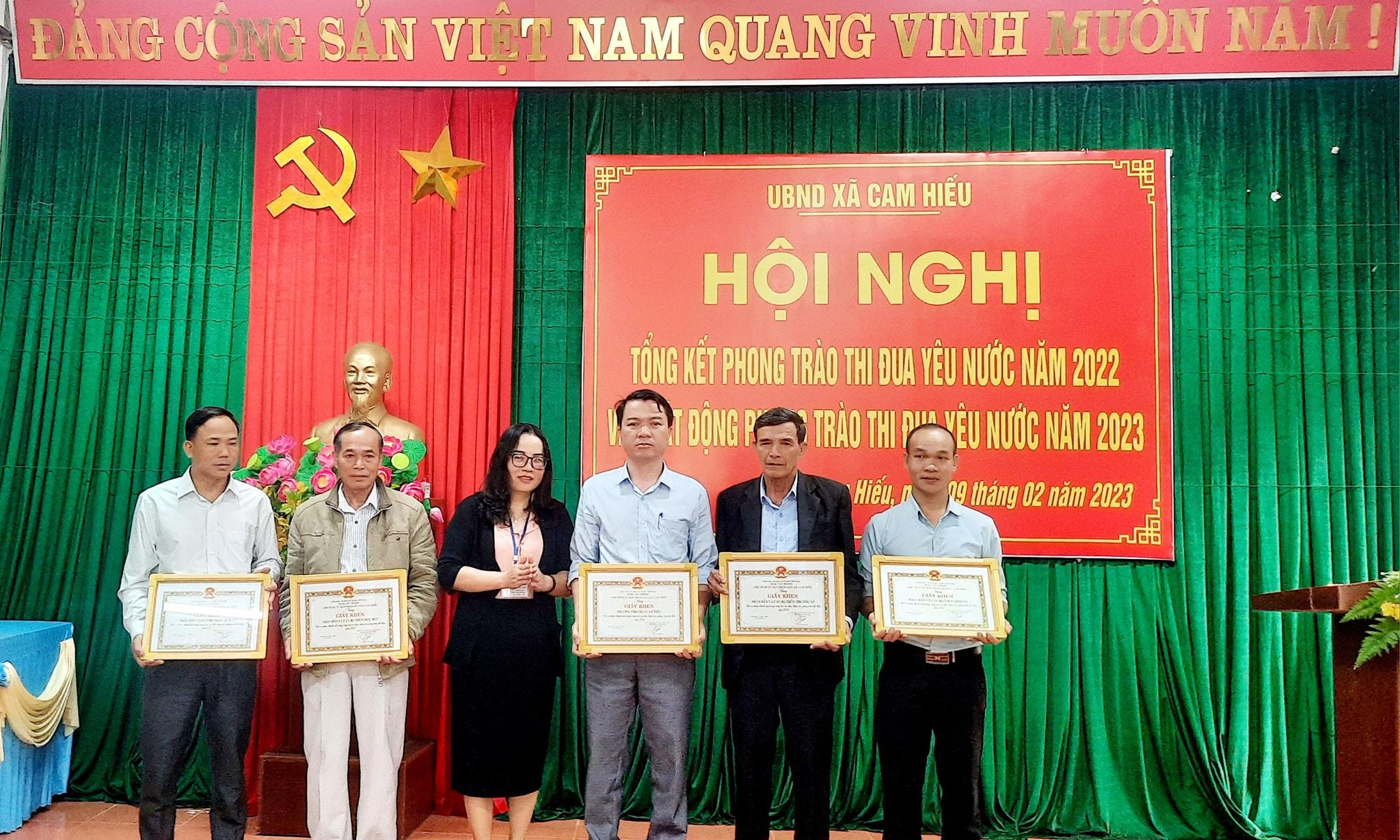 Dịp này, UBND xã Cam Hiếu đã trao thưởng cho 10 tập thể và 16 cá nhân có thành tích cao trong phong trào thi đua yêu nước năm 2022; 4 tập thể và 7 cá nhân có nhiều thành tích trong đợt phát động thi đua 40 ngày cao điểm xây dựng thôn kiểu mẫu, xã nông thôn mới nâng cao.