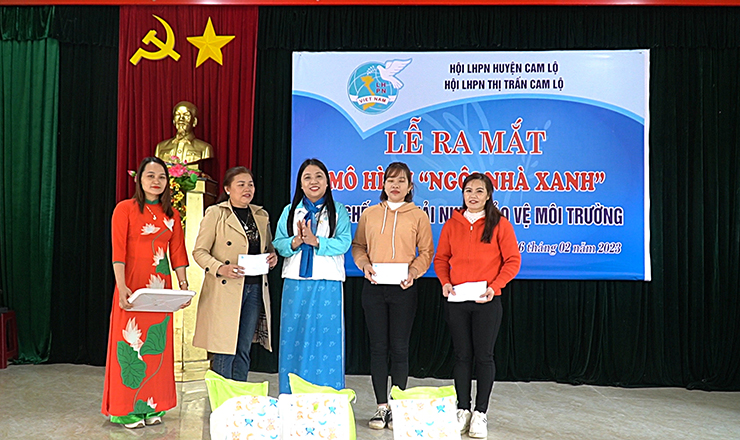 Thực hiện cuộc vận động “Xây dựng gia đình 5 không, 3 sạch”; “gia đình 5 có, 3 sạch”, sáng nay 16/2/2023, Hội LHPN huyện Cam Lộ phối hợp với Hội LHPN thị trấn Cam Lộ tổ chức ra mắt mô hình "Ngôi nhà xanh" hạn chế rác thải nhựa bảo vệ môi trường, gây quỹ hỗ trợ phụ nữ và trẻ em có hoàn cảnh khó khăn trên địa bàn.