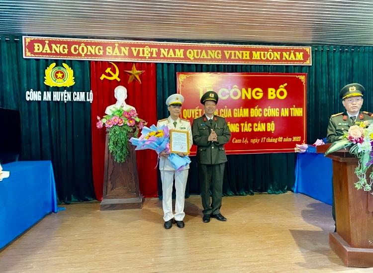 Tại buổi lễ, Phó Giám đốc Công an tỉnh Đại tá Lê Phương Nam đã công bố quyết định bổ nhiệm Trung tá Dương Xuân Ngọc, Đội trưởng Đội Quản lý hành chính về trật tự xã hội giữ chức vụ Phó Trưởng Công an huyện Cam Lộ.