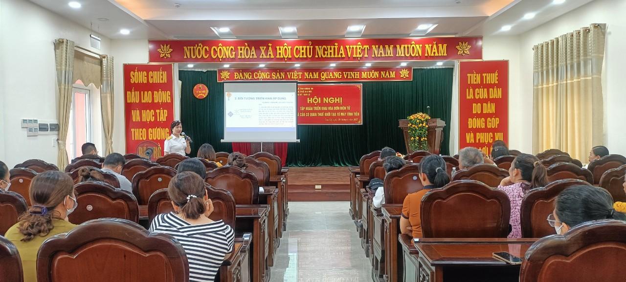 Ngày 28/4/2023, Chi Cục thuế khu vực Đông Hà – Cam Lộ đã tổ chức hội nghị tập huấn triển khai hóa đơn điện tử có mã của cơ quan thuế khởi tạo từ máy tính tiền cho các doanh nghiệp, hộ kinh doanh trên địa bàn huyện.