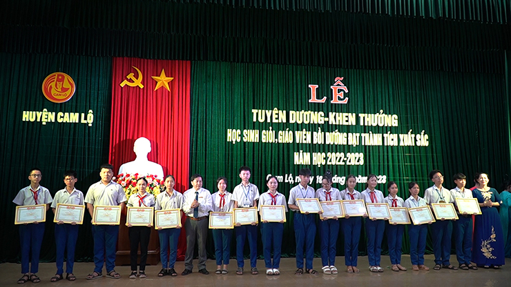 Tại buổi lễ, UBND huyện Cam Lộ đã tặng giấy khen cho 6 học sinh và 5 giáo viên đạt thành tích cao trong kỳ học sinh giỏi thi cấp tỉnh; Phòng Giáo dục và Đào tạo huyện tặng giấy khen cho 34 em; Hội Khuyến học Cam Lộ tặng giấy khen cho 12 em có hoàn cảnh khó khăn nhưng đạt thành tích cao trong các kỳ thi học sinh giỏi năm học 2022-2023.