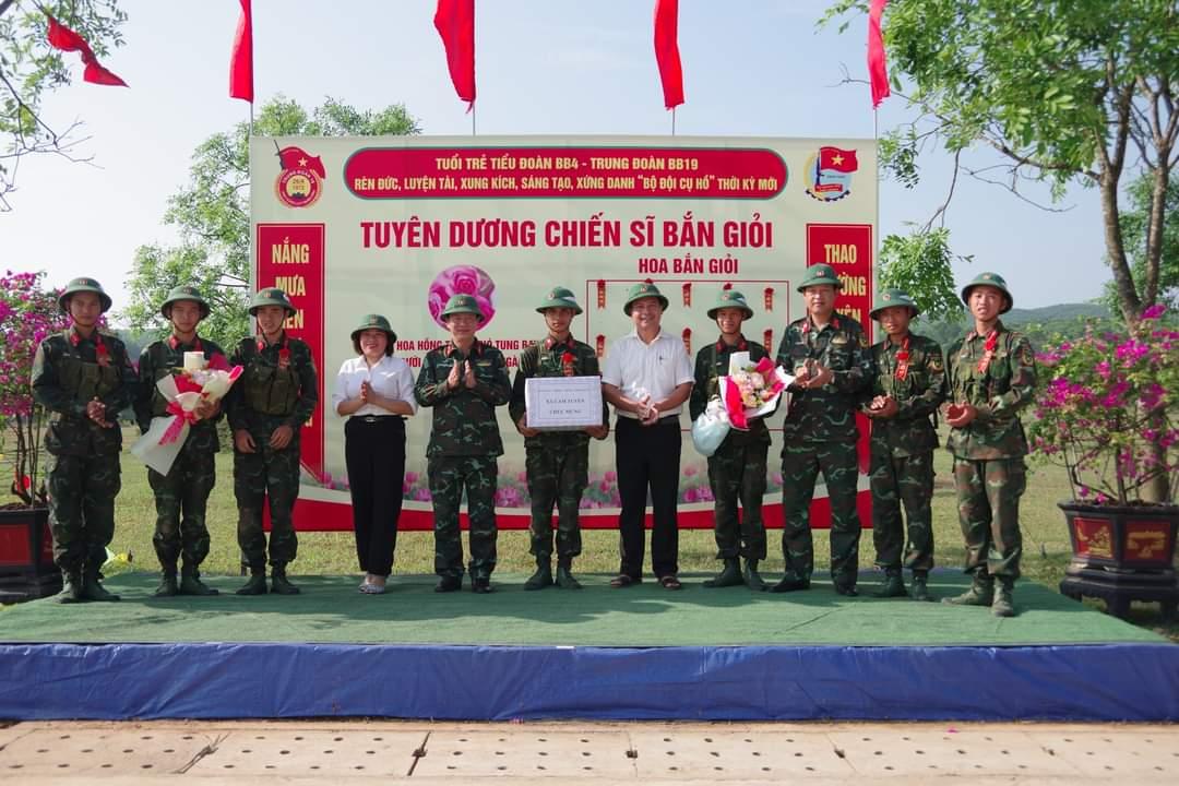 Tặng hoa, chúc mừng các chiến sĩ mới hoàn thành tốt nội dung kiểm tra 3 tiếng nổ