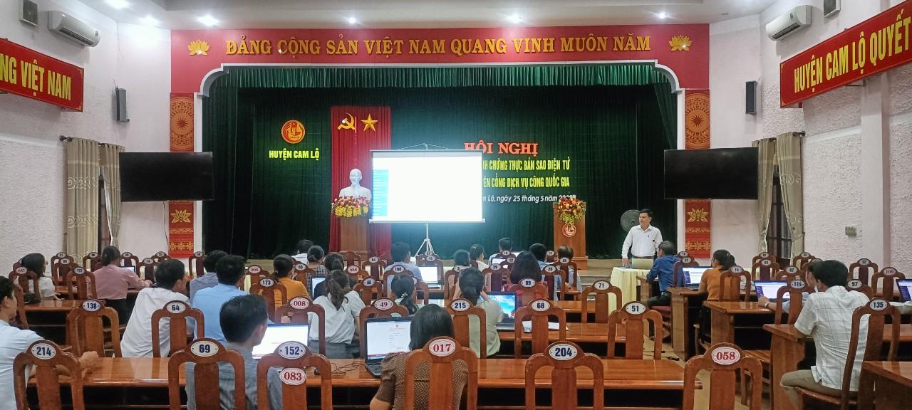 Ngày 25/5/2023, UBND huyện Cam Lộ phối hợp với Trung tâm phục vụ hành chính công tỉnh Quảng Trị tổ chức tập huấn quy trình chứng thực bản sao điện tử từ bản chính trên Cổng dịch vụ công quốc gia cho cán bộ phụ trách công tác chứng thực Phòng Tư pháp, cán bộ một cửa huyện, lãnh đạo, văn thư thuộc UBND các xã, thị trấn trên địa bàn huyện.
