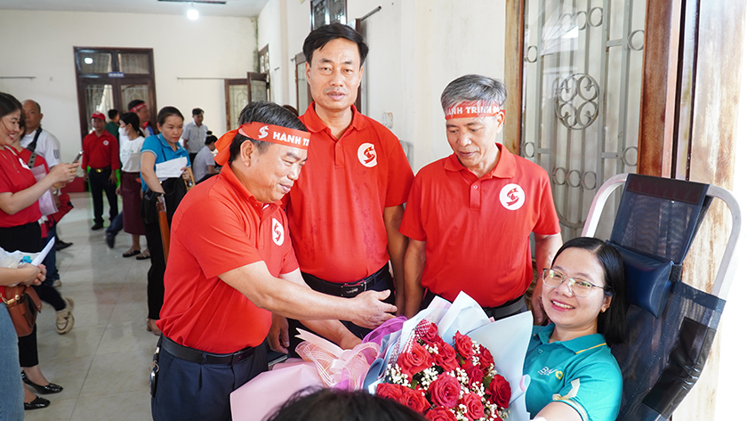 Lãnh đạo Hội CTĐ tỉnh và huyện Cam Lộ động viên các tình nguyện viên tham gia hiến máu tình nguyện