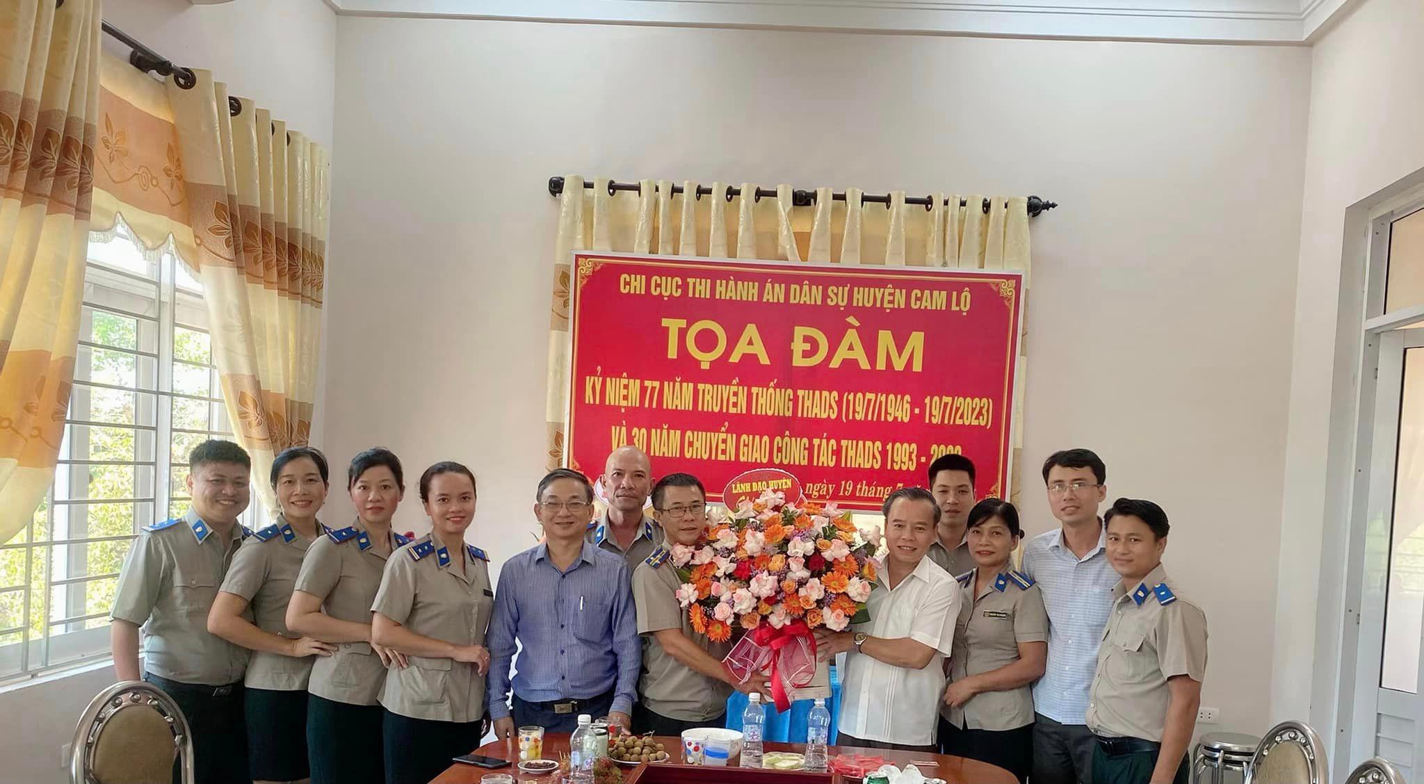 Nhân kỷ niệm 77 năm ngày truyền thống ngành Thi hành án dân sự (19/7/1946-19/7/2023), lãnh đạo huyện Cam Lộ cùng các cơ quan, đơn vị đã đến thăm, tặng hoa chúc mừng tập thể lãnh đạo và cán bộ Chi cục Thi hành án dân sự huyện.