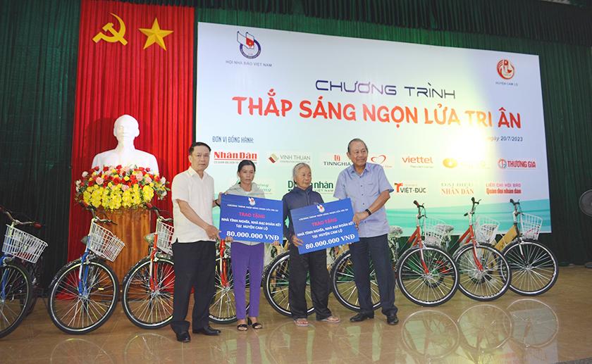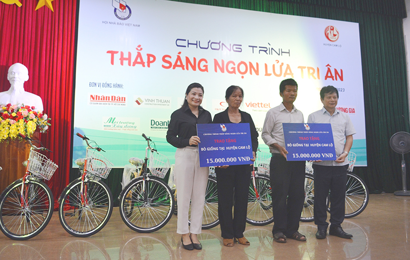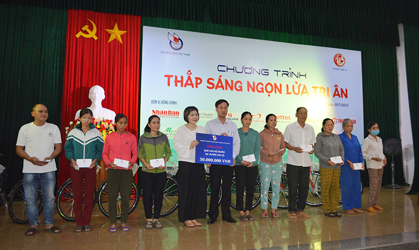 Trong đợt này, lãnh đạo Hội Nhà báo Việt Nam và các nhà tài trợ đã tiến hành trao 2 ngôi nhà tình nghĩa, 2 con bò giống cho các gia đình cựu TNXP; trao 30 chiếc xe đạp cho học sinh có hoàn cảnh khó khăn; trao 100 suất quà (500.000 đồng/suất) cho các hộ nghèo.