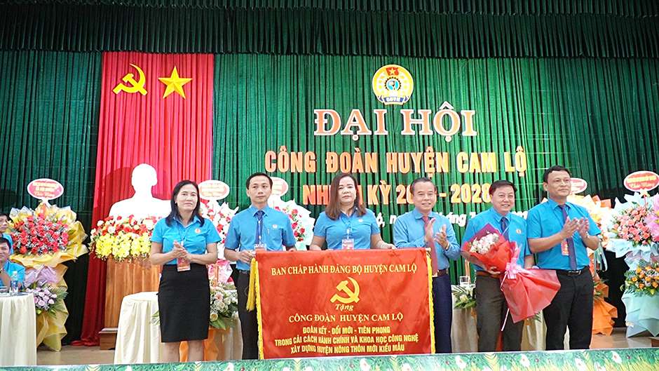 Dịp này, BCH Đảng bộ huyện đã tặng đại hội Bức trướng mang dòng chữ “Công đoàn huyện Cam Lộ đoàn kết-đổi mới-tiên phong trong cải cách hành chính và khoa học công nghệ, xây dựng huyện nông thôn mới kiểu mẫu”.