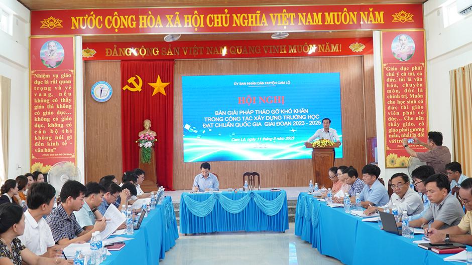 UBND huyện Cam Lộ vừa tổ chức hội nghị bàn giải pháp tháo gỡ khó khăn trong công tác duy trì trường đạt chuẩn quốc gia giai đoạn 2023-2025 và những năm tiếp theo.