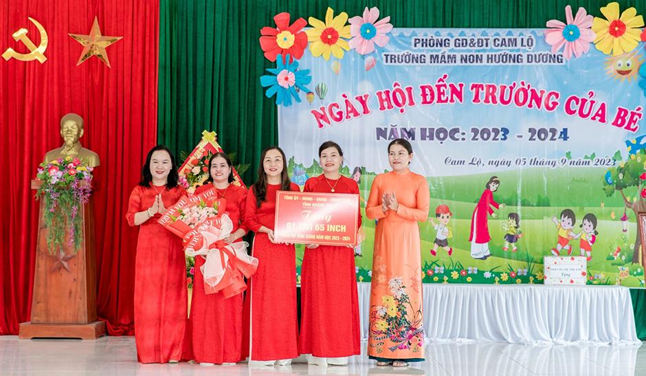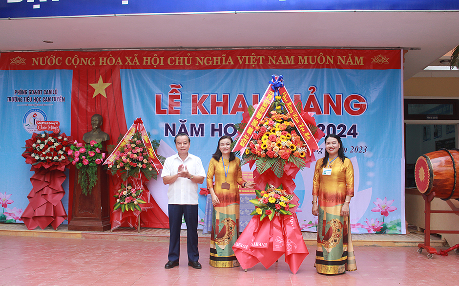 Tại lễ khai giảng, lãnh đạo tỉnh và huyện Cam Lộ đã tặng quà, hoa động viên và chúc mừng các thầy cô giáo, các em học sinh bước vào năm học mới.