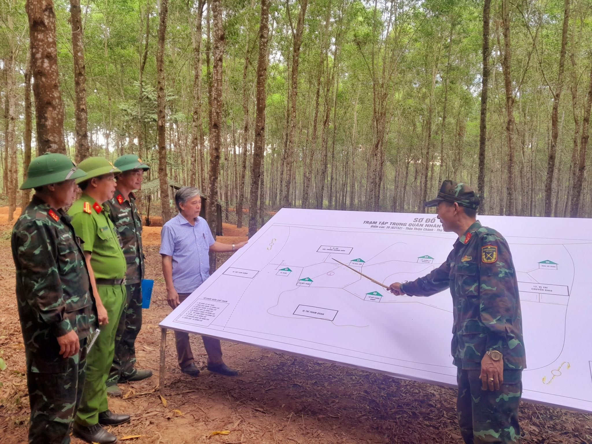 Đồng chí Trần Anh Tuấn, Chủ tịch UBND huyện nghe Ban CHQS huyện báo cáo phương án bố trí trạm tập trung