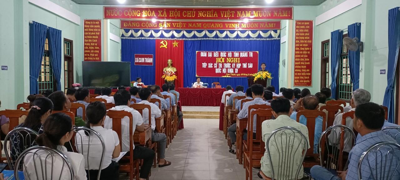 Để chuẩn bị cho kỳ họp thứ 6, Quốc hội khóa XV, ngày 29/9/2023, Đoàn đại biểu Quốc hội (ĐBQH) tỉnh Quảng Trị gồm: UVTƯ Đảng, Bí thư Tỉnh ủy, Trưởng Đoàn ĐBQH Lê Quang Tùng; Ủy viên Ban Thường vụ Tỉnh ủy, Chỉ huy trưởng Bộ CHQS tỉnh Đại tá Nguyễn Hữu Đàn cùng lãnh đạo các sở, ban, ngành cấp tỉnh và lãnh đạo huyện Cam Lộ đã có buổi tiếp xúc cử tri tại xã Cam Thành, huyện Cam Lộ.