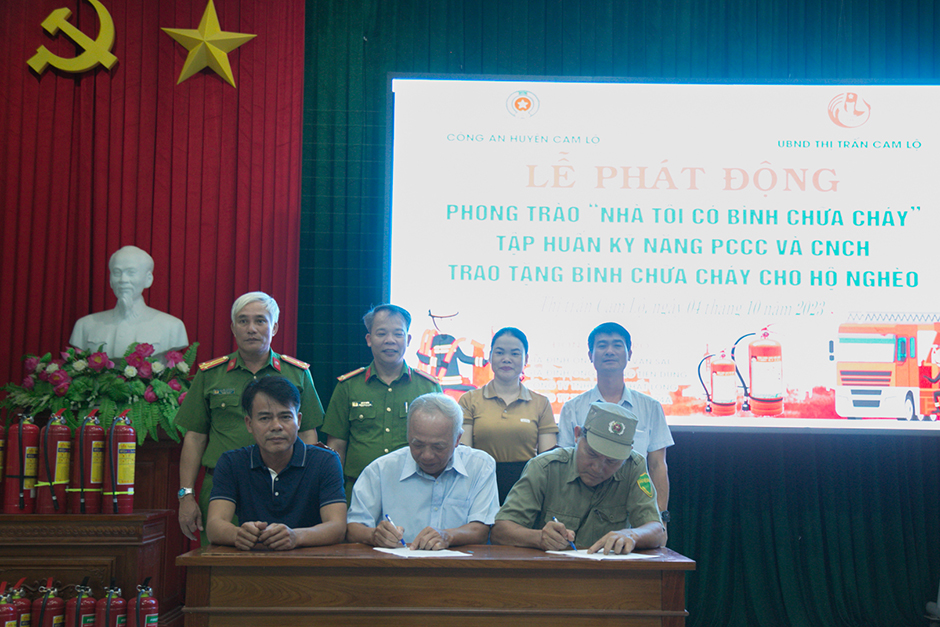 Tại buổi lễ, Công an huyện Cam Lộ đã phát động phong trào “Nhà tôi có bình chữa cháy” trong toàn thể cán bộ, công nhân viên chức, người lao động và 100 % các hộ gia đình trên địa bàn huyện. Đồng thời, tổ chức ký cam kết về việc thực hiện tốt công tác PCCC&CNCH đối với các khu phố trên địa bàn thị trấn Cam Lộ.