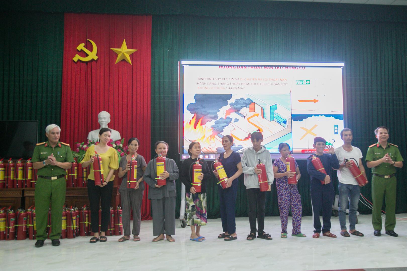 Tại chương trình, 50 bình chữa cháy do Công an huyện Cam Lộ kêu gọi đã được trao tặng đến 100 % hộ nghèo và đại diện các đội dân phòng trên địa bàn thị trấn.