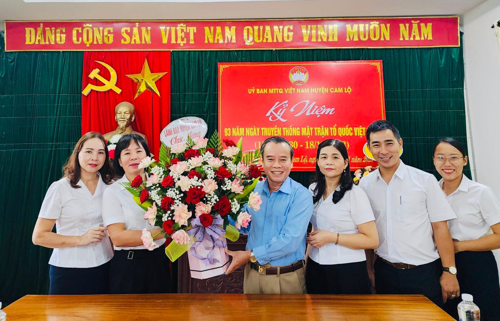 Lãnh đạo huyện tặng hoa, chúc mừng UBMTTQVN huyện nhân kỷ niệm 93 năm ngày thành lập Mặt trận Dân tộc thống nhất Việt Nam