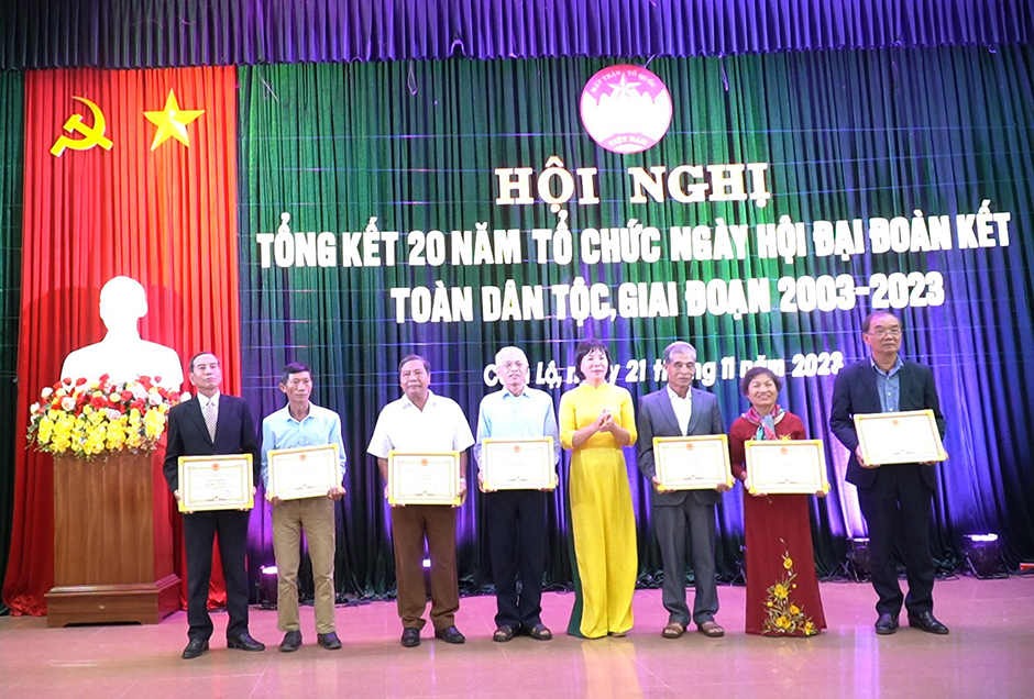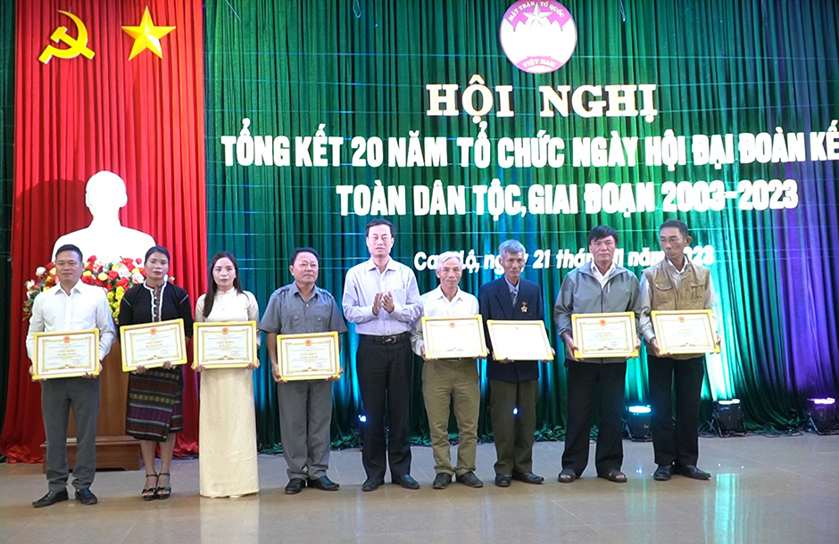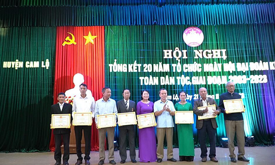Dịp này, Chủ tịch UBND huyện Cam Lộ tặng giấy khen cho 8 tập thể và 16 cá nhân có thành tích xuất sắc trong 20 năm tổ chức Ngày hội Đại đoàn kết toàn dân tộc, giai đoạn 2003 – 2023.