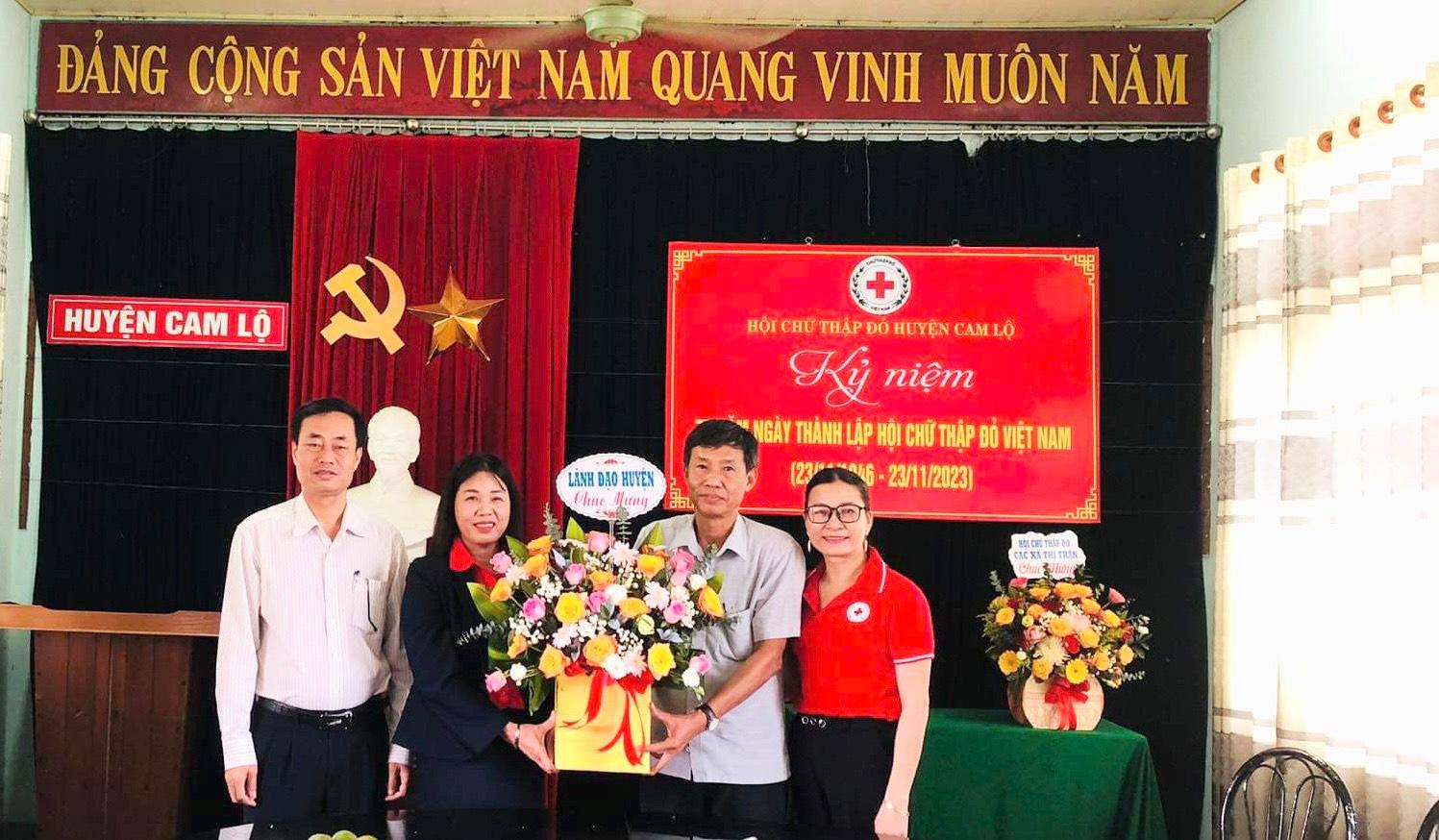 Ngày 23/11/2023, lãnh đạo huyện Cam Lộ cùng các cơ quan, đơn vị đã đến thăm, tặng hoa, chúc mừng Hội Chữ thập đỏ huyện nhân kỷ niệm 77 năm ngày thành lập Hội Chữ thập đỏ Việt Nam (23/11/1946-23/11/2023).