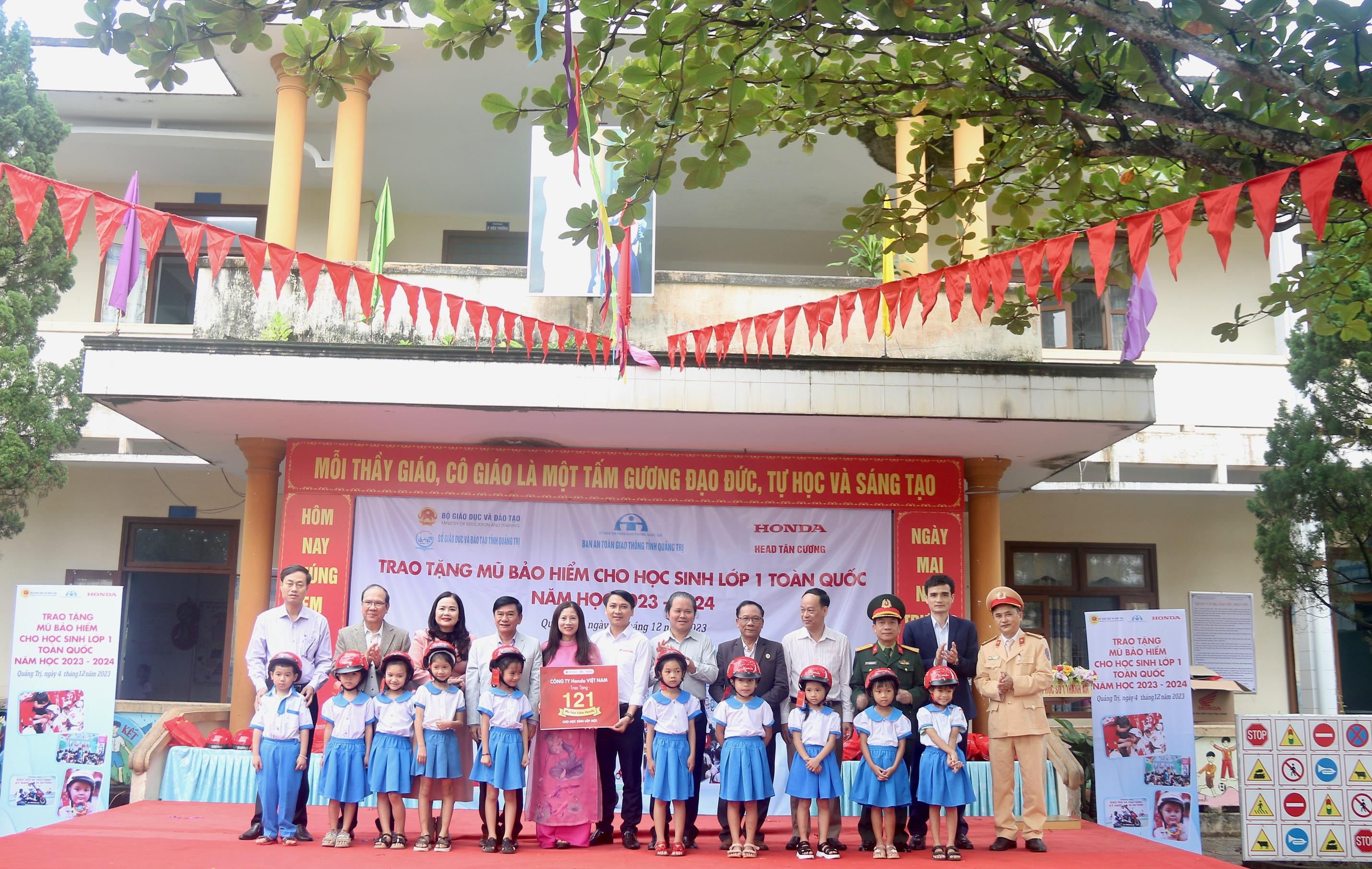 Năm học 2023 - 2024, tỉnh Quảng Trị có 13.365 học sinh lớp 1 và theo kế hoạch chương trình, mỗi em sẽ được tặng 1 chiếc mũ bảo hiểm đạt chuẩn do Công ty Honda Việt Nam tài trợ.