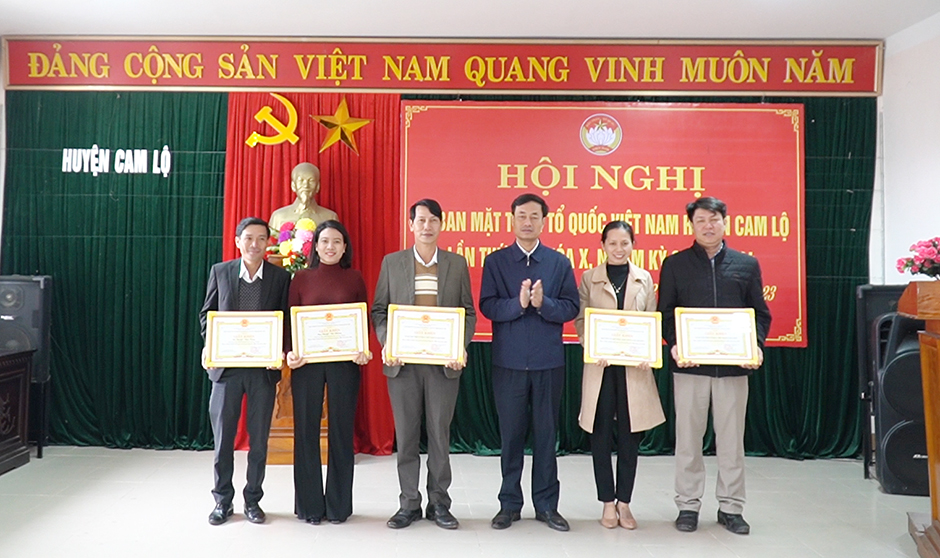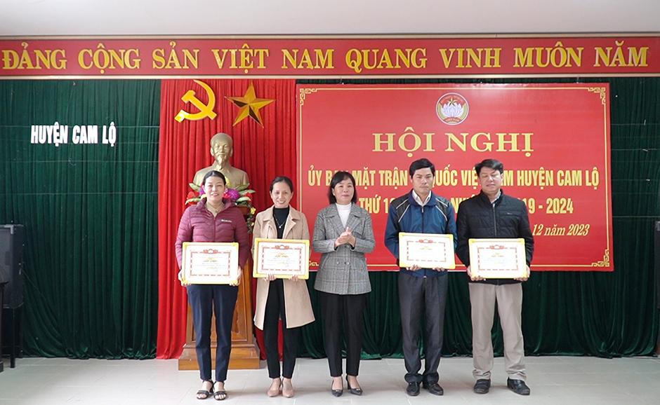 Dịp này, UBND huyện đã tặng cho 3 tập thể và 4 cá nhân; UBMT huyện tặng giấy khen cho 4 tập thể có nhiều thành tích trong công tác mặt trận năm 2023.