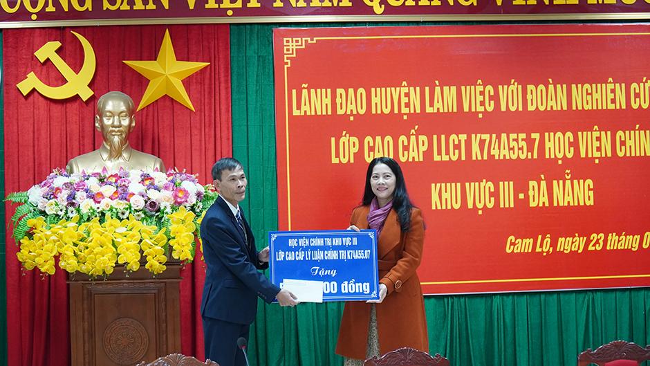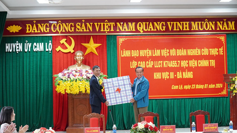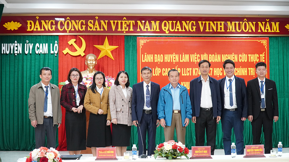 Ngày 23/1/2024, Đoàn nghiên cứu Lớp cao cấp lý luận chính trị K74A55.7, Học viện Chính trị khu vực III, Đà Nẵng do Tiến sỹ Lê Xuân Hoa, Trưởng khoa Chủ nghĩa xã hội khoa học làm trưởng đoàn đã đến tìm hiểu thực tế về tình hình phát kinh tế - xã hội tại huyện Cam Lộ. Tiếp và làm việc với đoàn có đồng chí Nguyễn Ký Ngọc, Phó Bí thư Thường trực Huyện ủy, Chủ tịch HĐND huyện; đồng chí Nguyễn Thanh Bắc, Phó Chủ tịch UBND huyện.